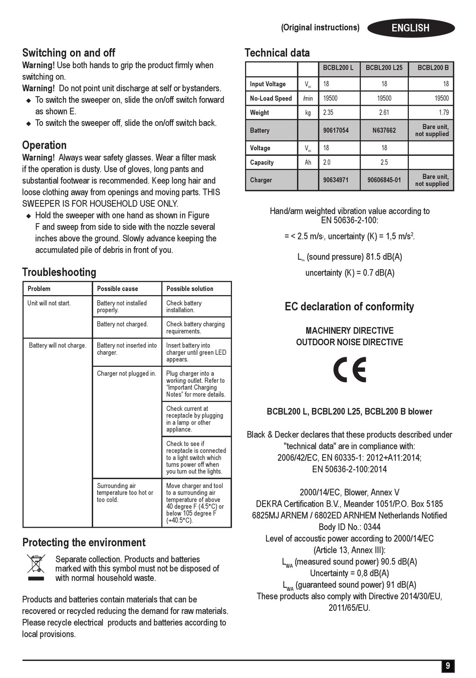 BCBL200 L, BCBL200 L25, BCBL200 B blower