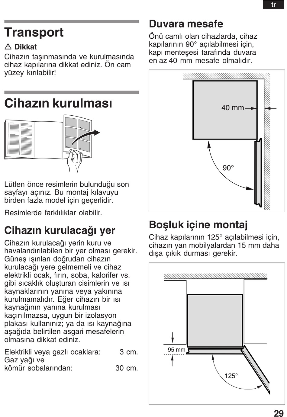 Transport; CihazžN Kurulmasž CihazžN Kurulacaž Yer; Duvara Mesafe - Bosch Kgn36Sm30 Installation Instructions Manual