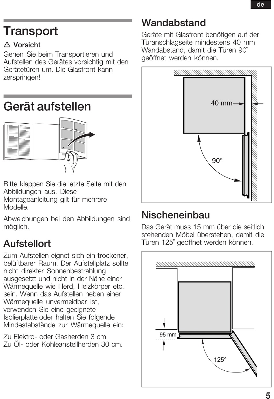 Aufstellort; Wandabstand; Nischeneinbau - Bosch Kgn36Sm30 Installation Instructions Manual