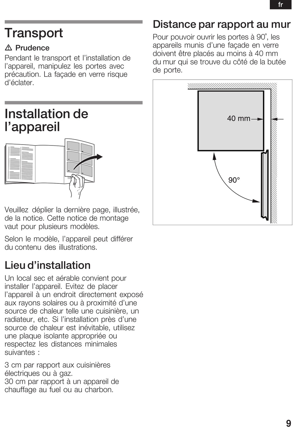 Pour pouvoir ouvrir les portes à 90°, les