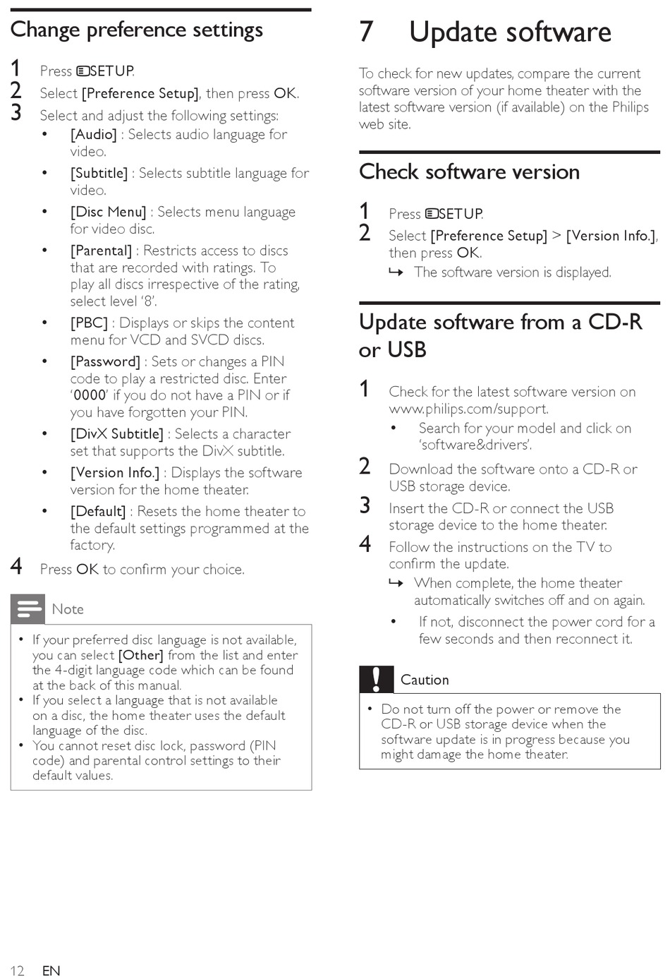 on a disc, the home theater uses the default