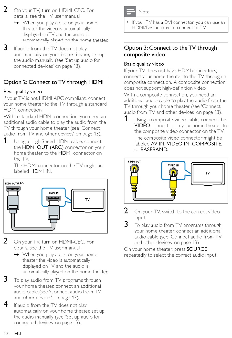audio from TV and other devices' on page 13).