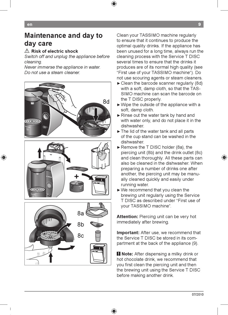Tassimo TAS20 UC Series MaintenanceAndDayToDayCare