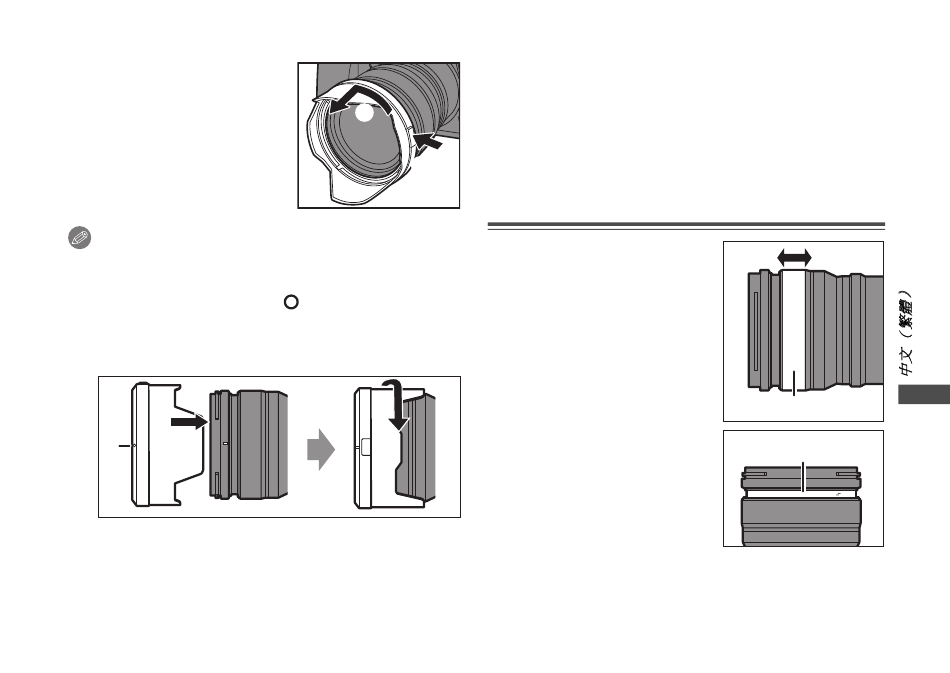 攜帶時 , 可以以相反的方向安裝鏡頭遮光罩 。