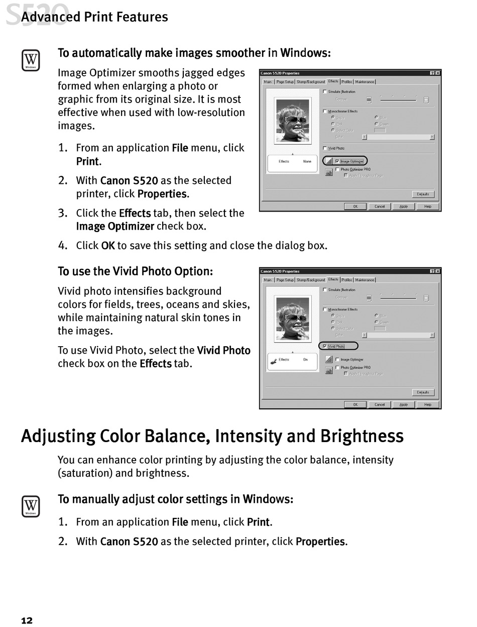 You can enhance color printing by adjusting the color balance, intensity