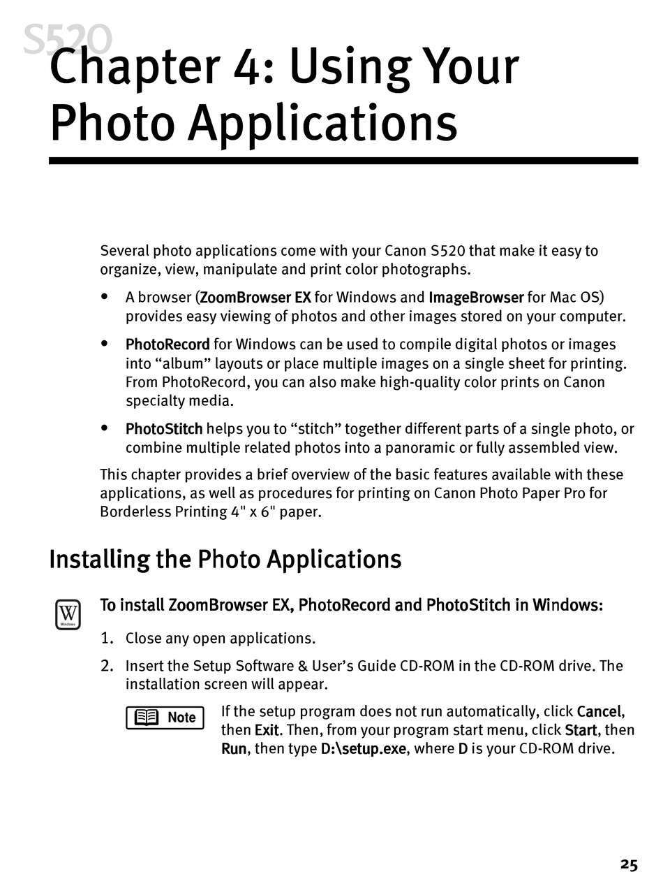 Several photo applications come with your Canon S520 that make it easy to