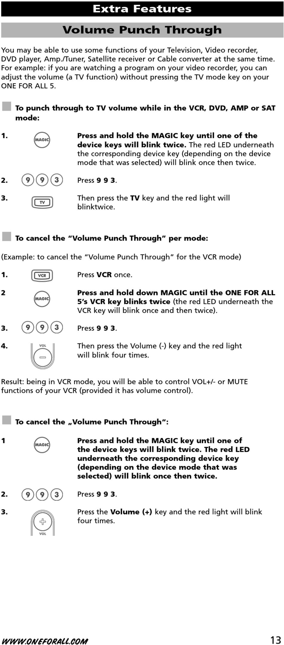 Result: being in VCR mode, you will be able to control VOL+/- or MUTE