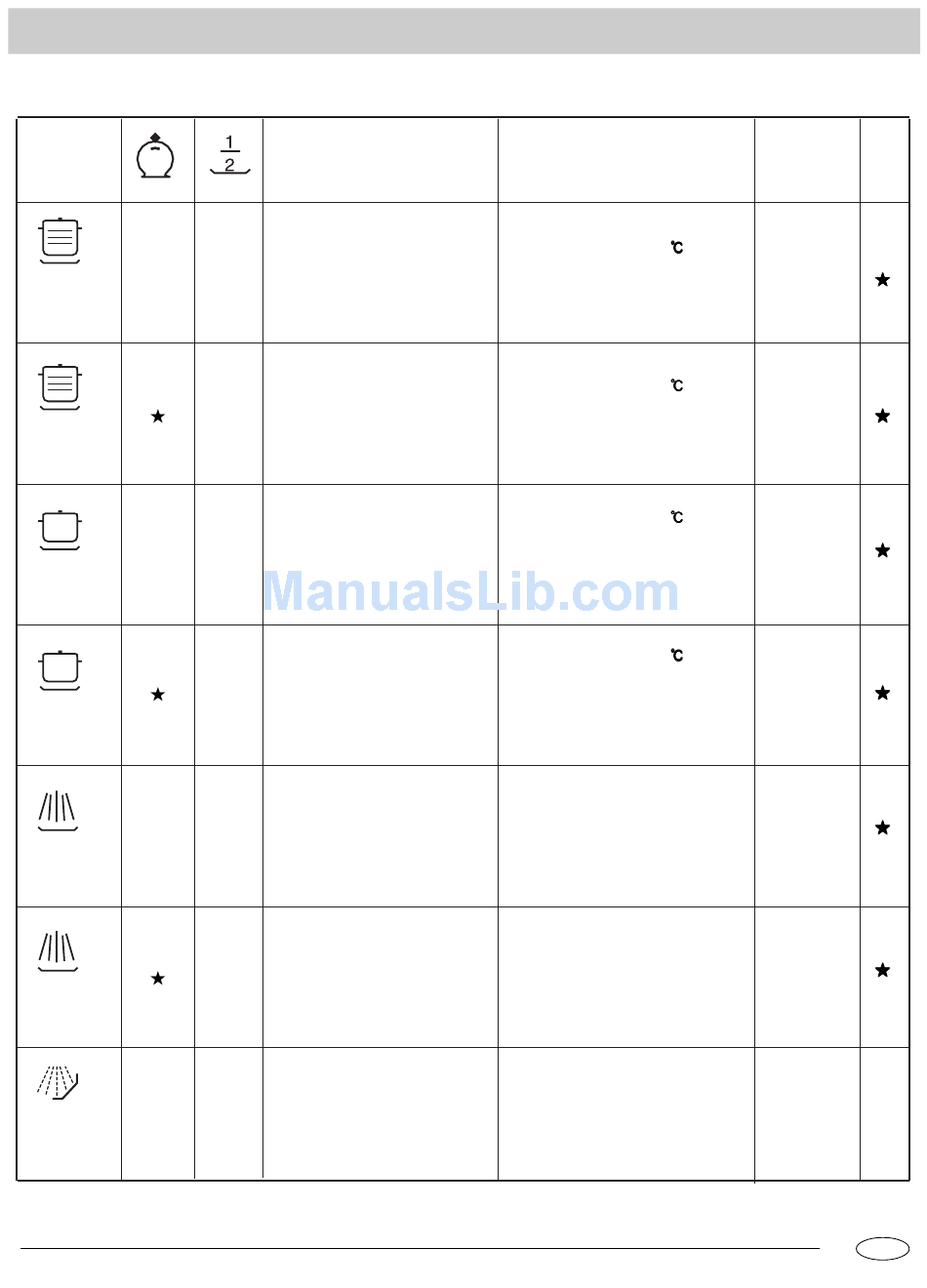 Wash Cycle Table