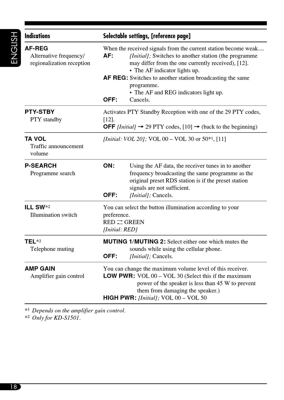 OFF [Initial] = 29 PTY codes, [10] = (back to the beginning)
