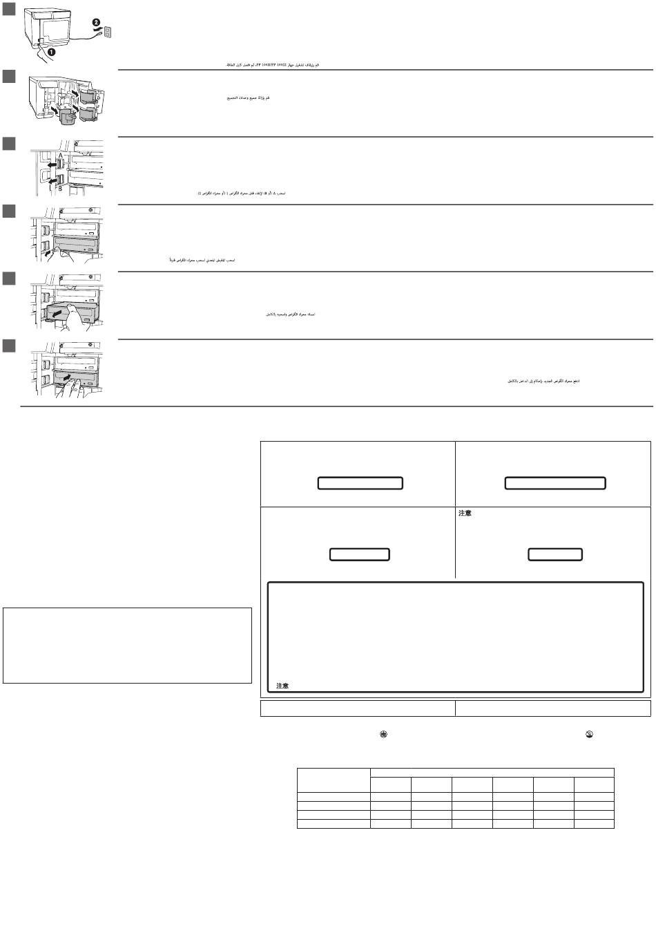 Vyjměte všechny zásobníky. • Távolítsa el az összes kötegelőt. • Vyberte všetky zásobníky. • Scoateţi toate sertarele. • Отстранете всички стекове. • Noņemiet visas starplikas. • Pašalinkite visus lipdukus. • Eemaldage kõik toed. • Снимите все наклейки.