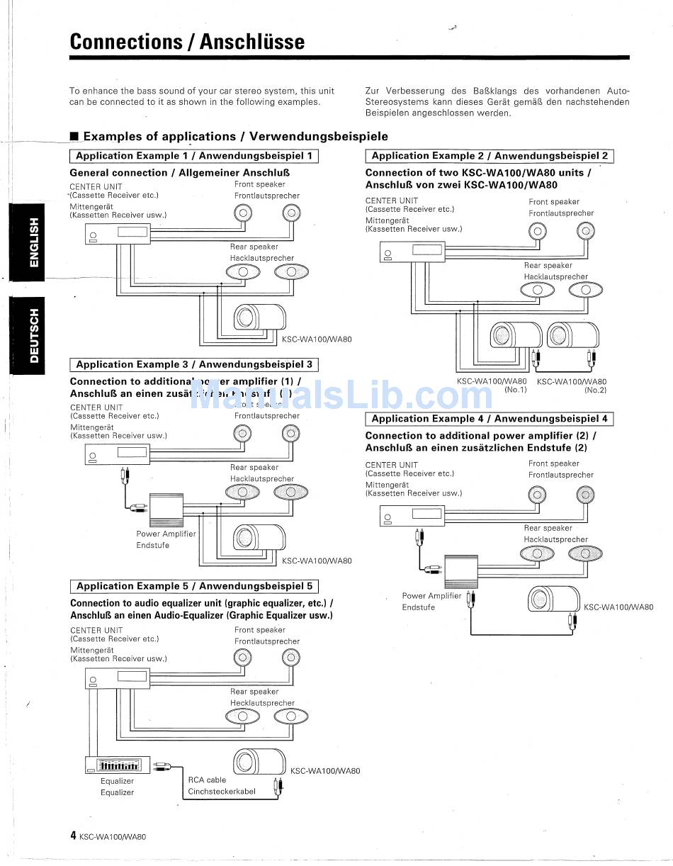 Connections; Examples Of Applications; General Connection; Connection Of Two Ksc-Wa100/Wa80 Units - Kenwood Ksc-Wa100 Instruction Manual