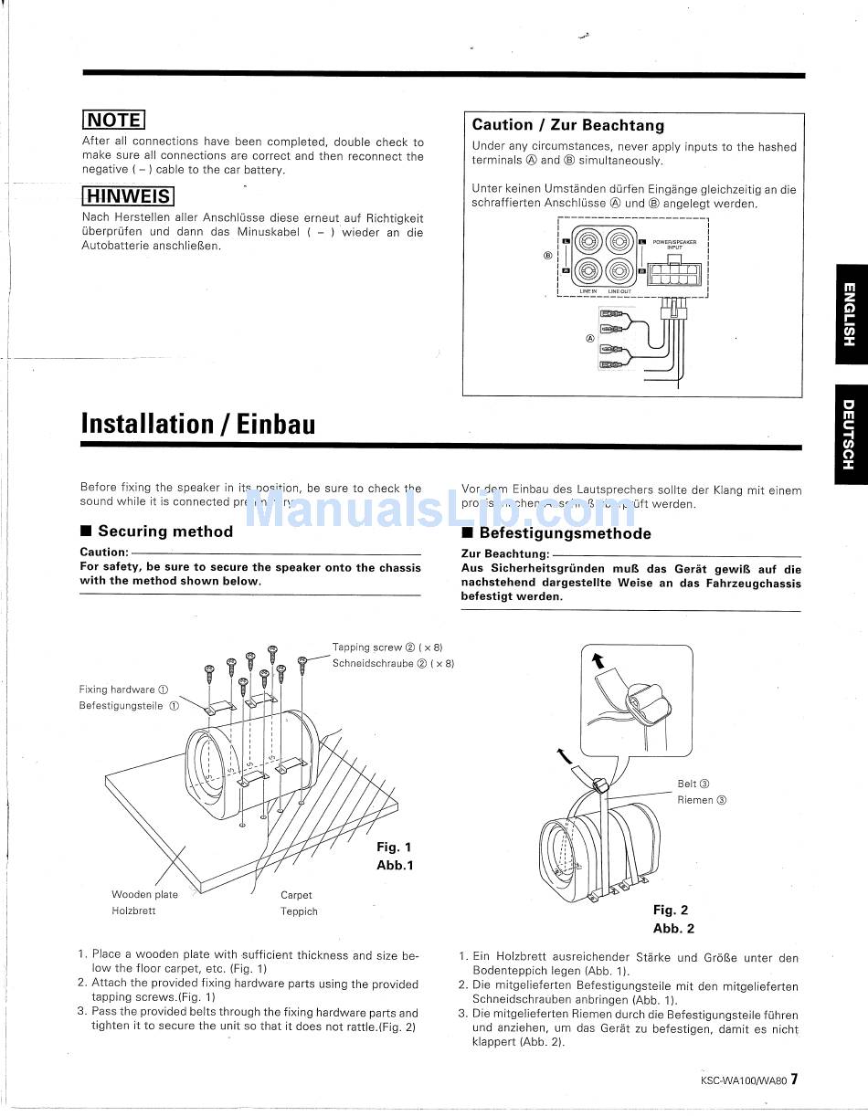Installation; Securing Method - Kenwood Ksc-Wa100 Instruction Manual