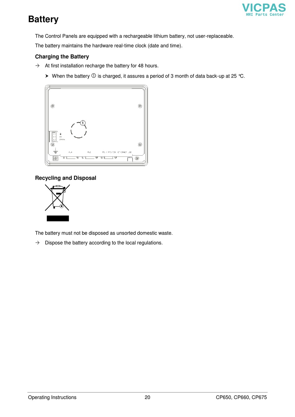 The Control Panels are equipped with a rechargeable lithium battery, not user-replaceable.