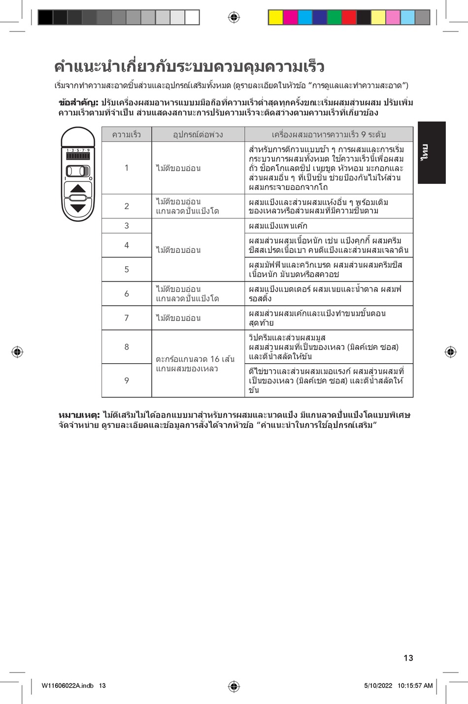 ข้ อ ส่ ำ า คุ ัญ: ปุ่รัั บ เครัื � อ งผสมุอาหารัแบบมุมุื อ ถ้ื อ ที่่ � ค วามุเรั็ ว ตำ � า สุ ด ทีุ่ ก ครัั � ง ขณ์ะเรัิ � มุ ผสมุส � ว นผสมุ ปุ่รัั บ เพิ � มุ