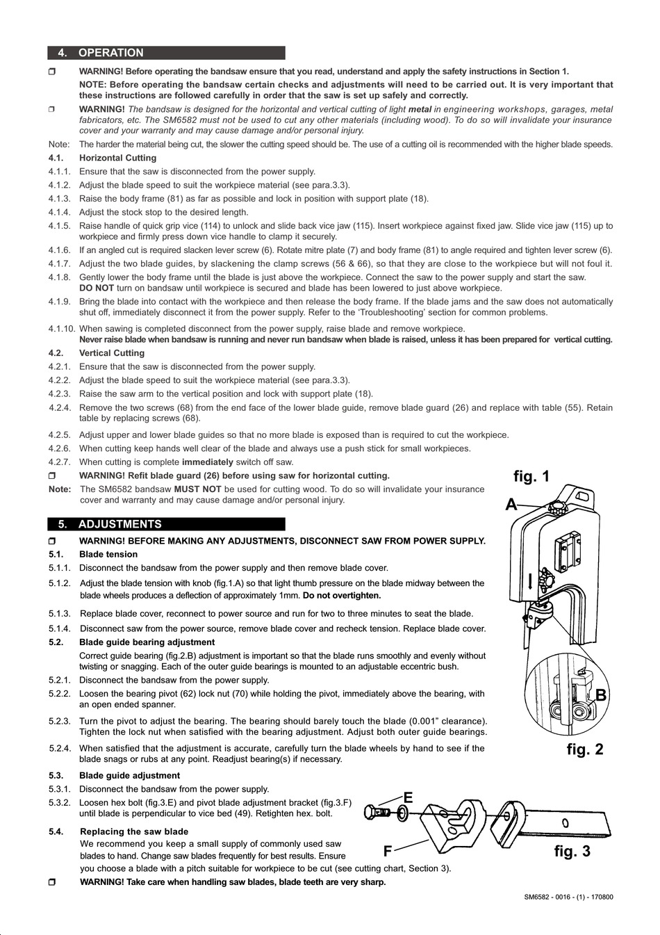 WARNING! Before operating the bandsaw ensure that you read, understand and apply the safety instructions in Section 1.
