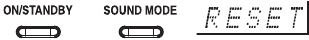 - While pressing the SOUND MODE button, press and hold the ON/STANDBY button until "RESET" appears.