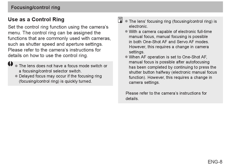 details on how to use the control ring.