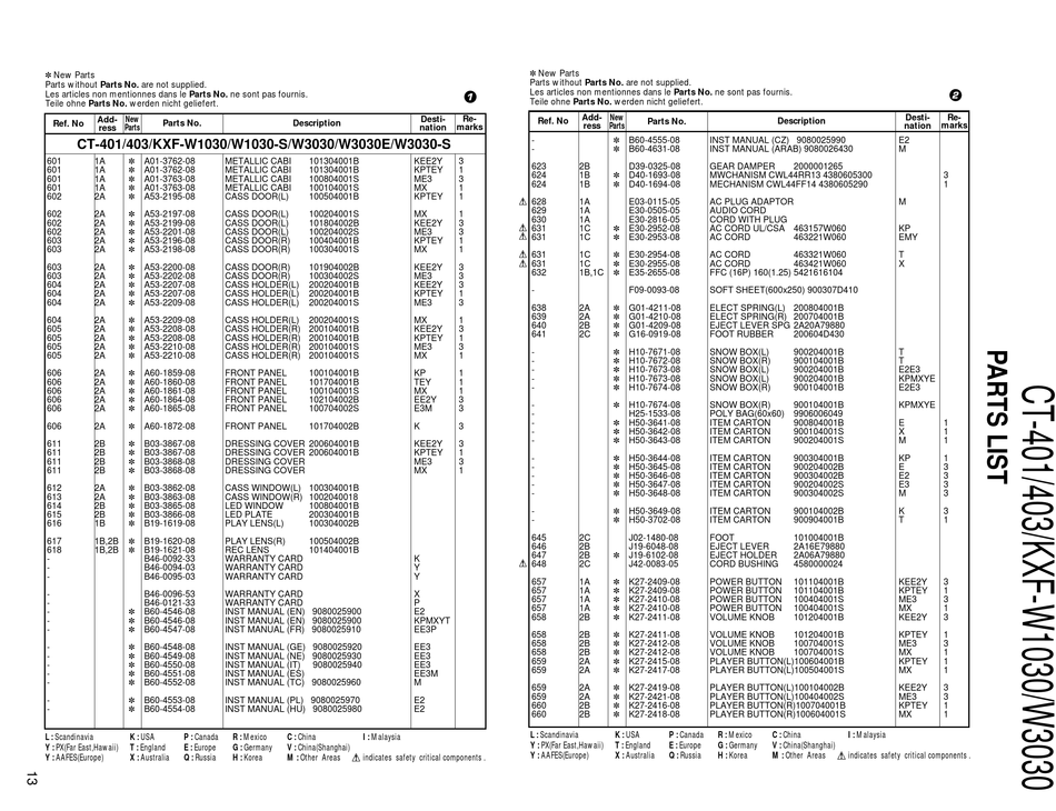 CT-401/403/KXF-W1030/W1030-S/W3030/W3030E/W3030-S