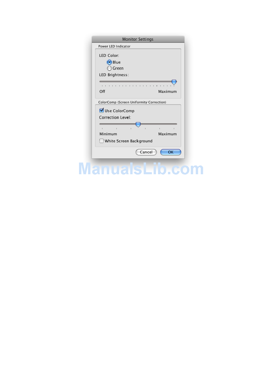 The ColorComp control adjusts the screen uniformity correction applied to the display in order to improve the