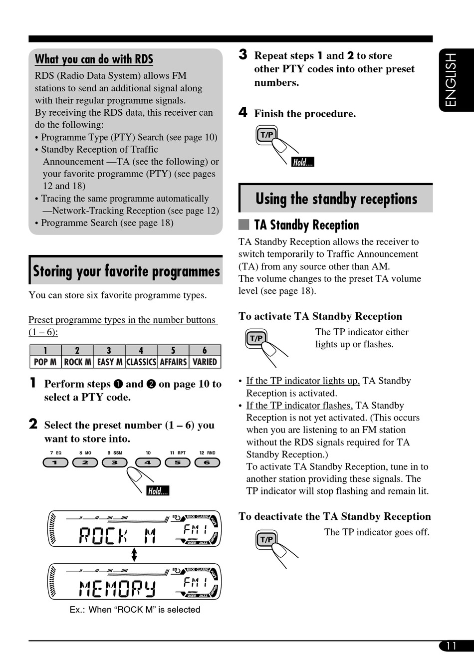 • If the TP indicator flashes, TA Standby