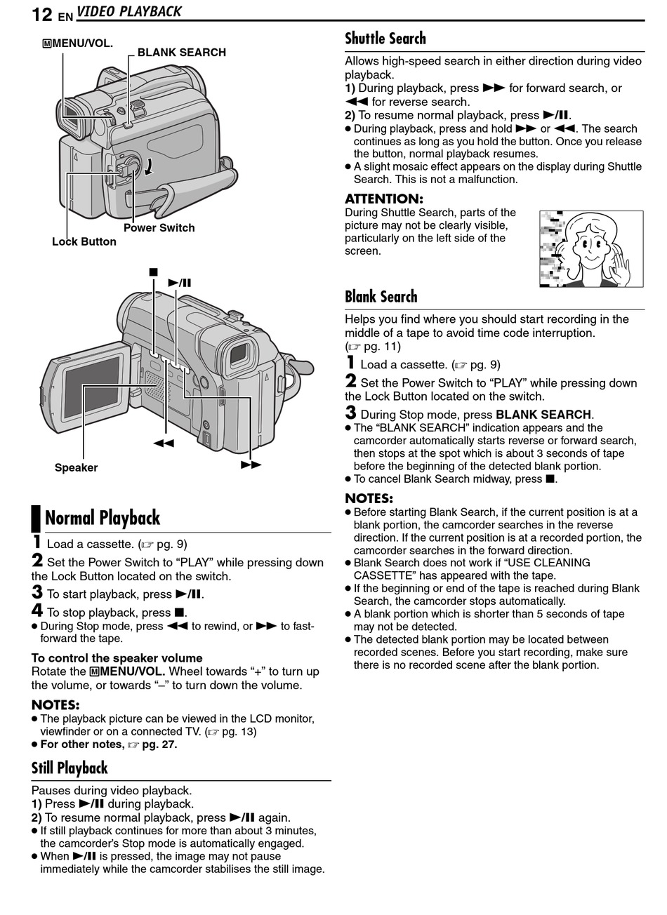 blank portion, the camcorder searches in the reverse