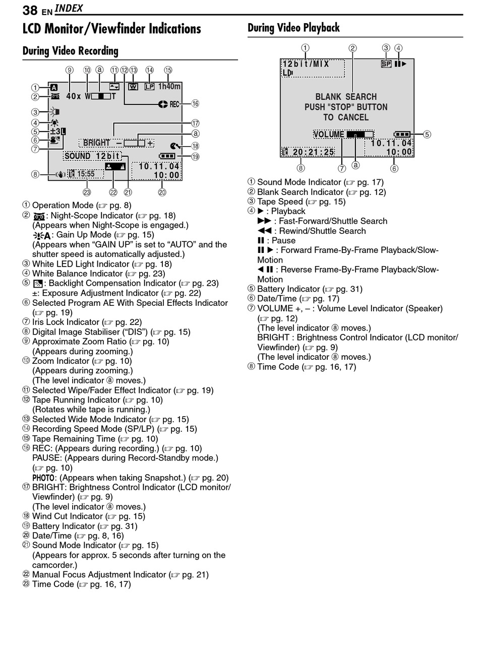 VOLUME +, – : Volume Level Indicator (Speaker)