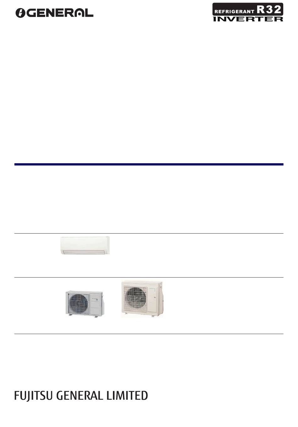 1. Specifications Wall mounted Type Inverter heat pump Model name ASHG18KLCA ASHG24KLCA Power supply 230 V ~ 50 Hz Available voltage range 198—264 V 5.20 7.10 Rated Btu/h 17,700 24,200 Cooling 0.9—5.5 0.9—7.7 Min.—Max. Btu/h 3,000—18,700 3,000—26,200 Capacity 6.30 8.00 Rated Btu/h 21,400...