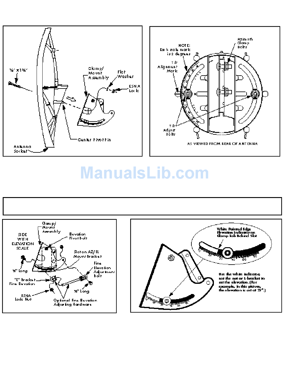 11. If fine elevation adjustment hardware is not included with your dish model, then adjust elevation as per Figure