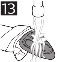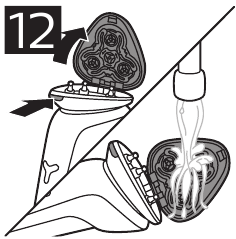 - Rinse the outside of the shaving unit with lukewarm water (Fig. 13).