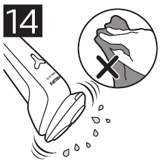 Never dry the shaving unit with a towel or tissue, as this may damage the shaving heads (Fig. 14).