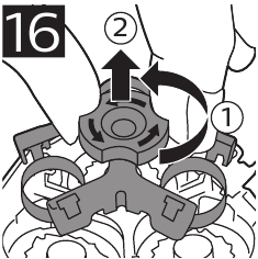- Turn the lock anticlockwise (1) and remove the retaining frame (Fig. 16) (2). Place it aside in a safe place.