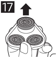 - Remove and clean one shaving head at a time. Each shaving head consists of a cutter and a guard (Fig. 17).
