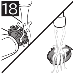 Note: Do not clean more than one cutter and guard at a time, since they are all matching sets. If you accidentally mix up the cutters and guards, it may take several weeks before optimal shaving performance is restored. - Remove the cutter from the shaving guard and clean both parts under the tap (Fig. 18).