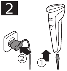 When you start charging the empty battery, the charging light flashes quickly. After approx. 5 minutes the charging light flashes slowly. The shaver now contains enough energy for one shave.