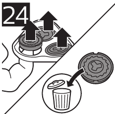 Discard the used shaving heads immediately to avoid mixing them with the new shaving heads (Fig. 24).
