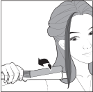 - At the hair tips, turn and rotate the curler naturally so that hair is wrapped around the barrel from tip to root.