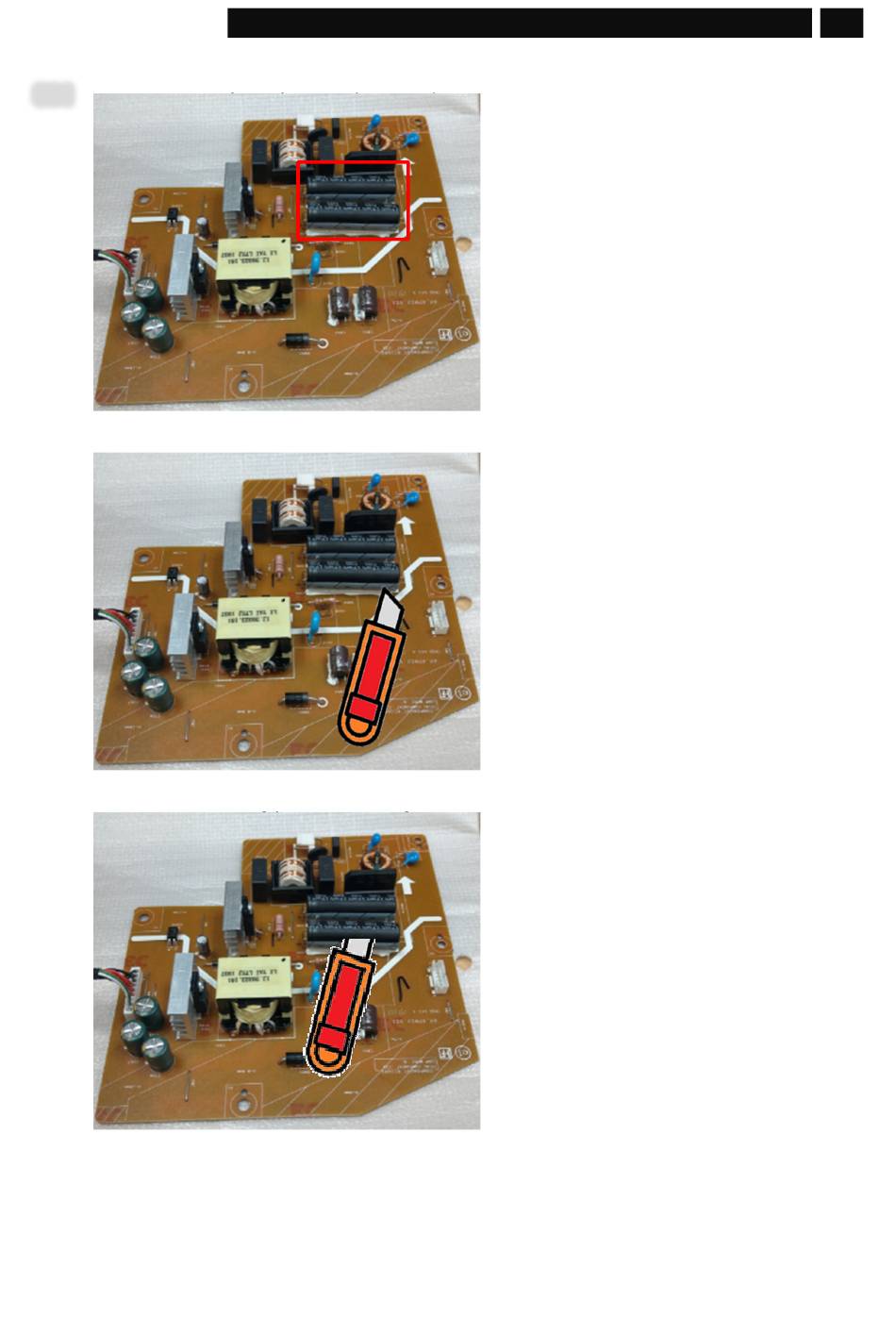 S31-1 Cut the glue between bulk cap. and PCB with a knife