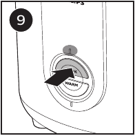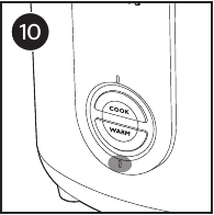 - The rice cooker switches to the keep warm mode automatically, and the keep warm (Warm) indicator lights up (Fig. 10).