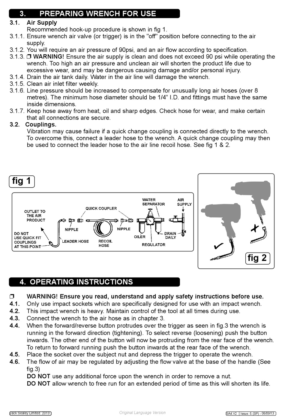3.1.4. Drain the air tank daily. Water in the air line will damage the wrench.