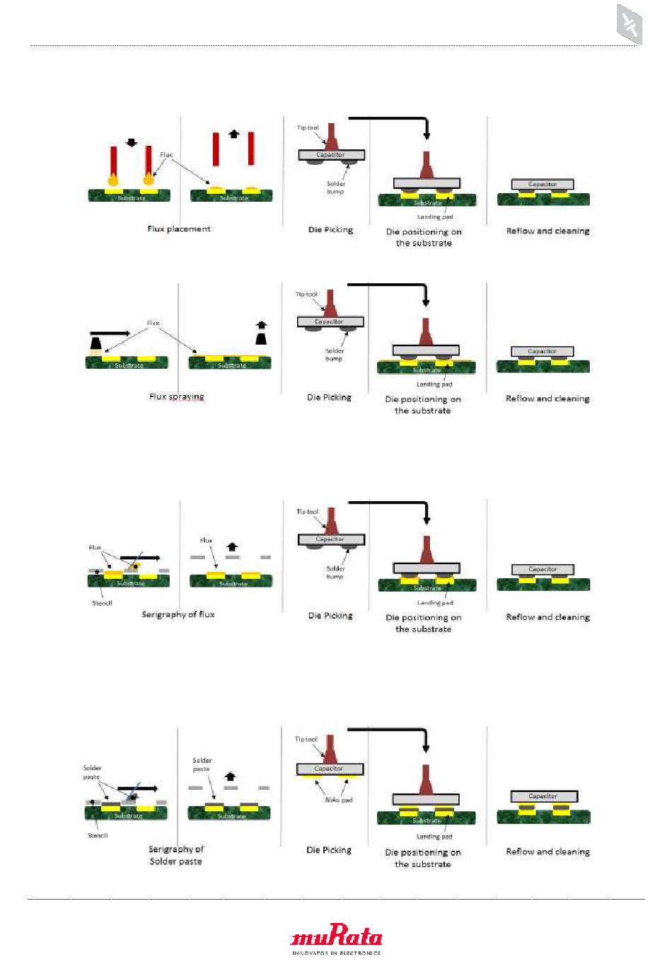 We recommend placing the solder paste by serigraphy directly on the substrate landing pads: