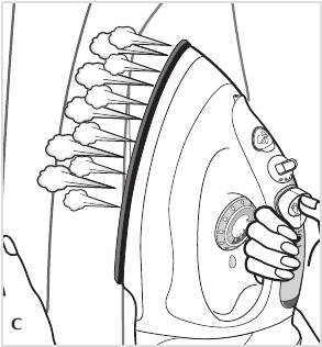 button as you move the iron over the fabric (C).