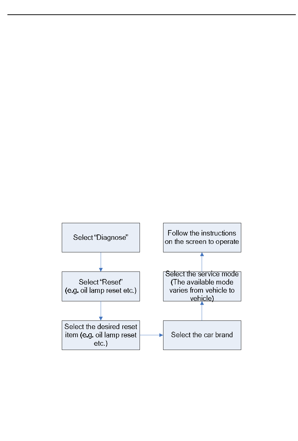 For Creader 7001S, just follow the flowchart below to perform resetting.