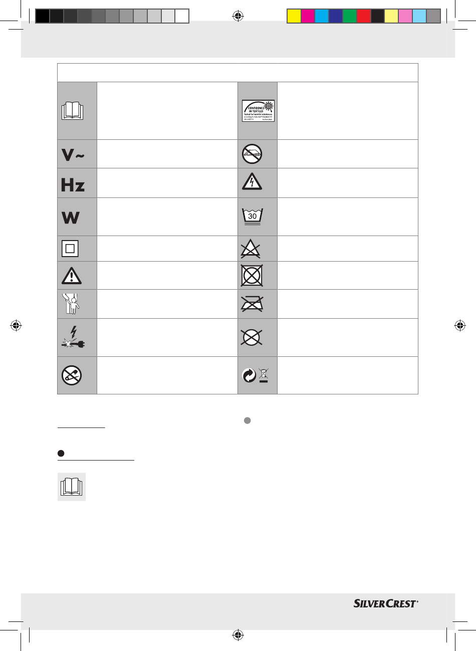 The following icons / symbols are used in this instruction manual / on this heating pad: