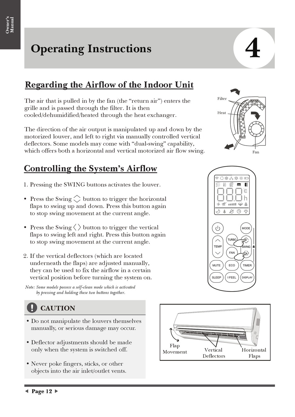 flaps to swing left and right. Press this button again