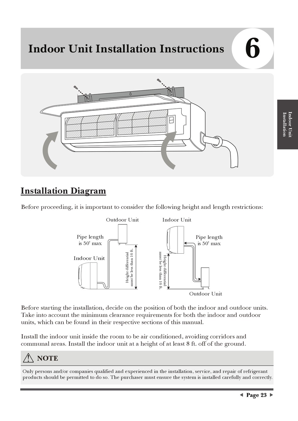 communal areas. Install the indoor unit at a height of at least 8 ft. off of the ground.