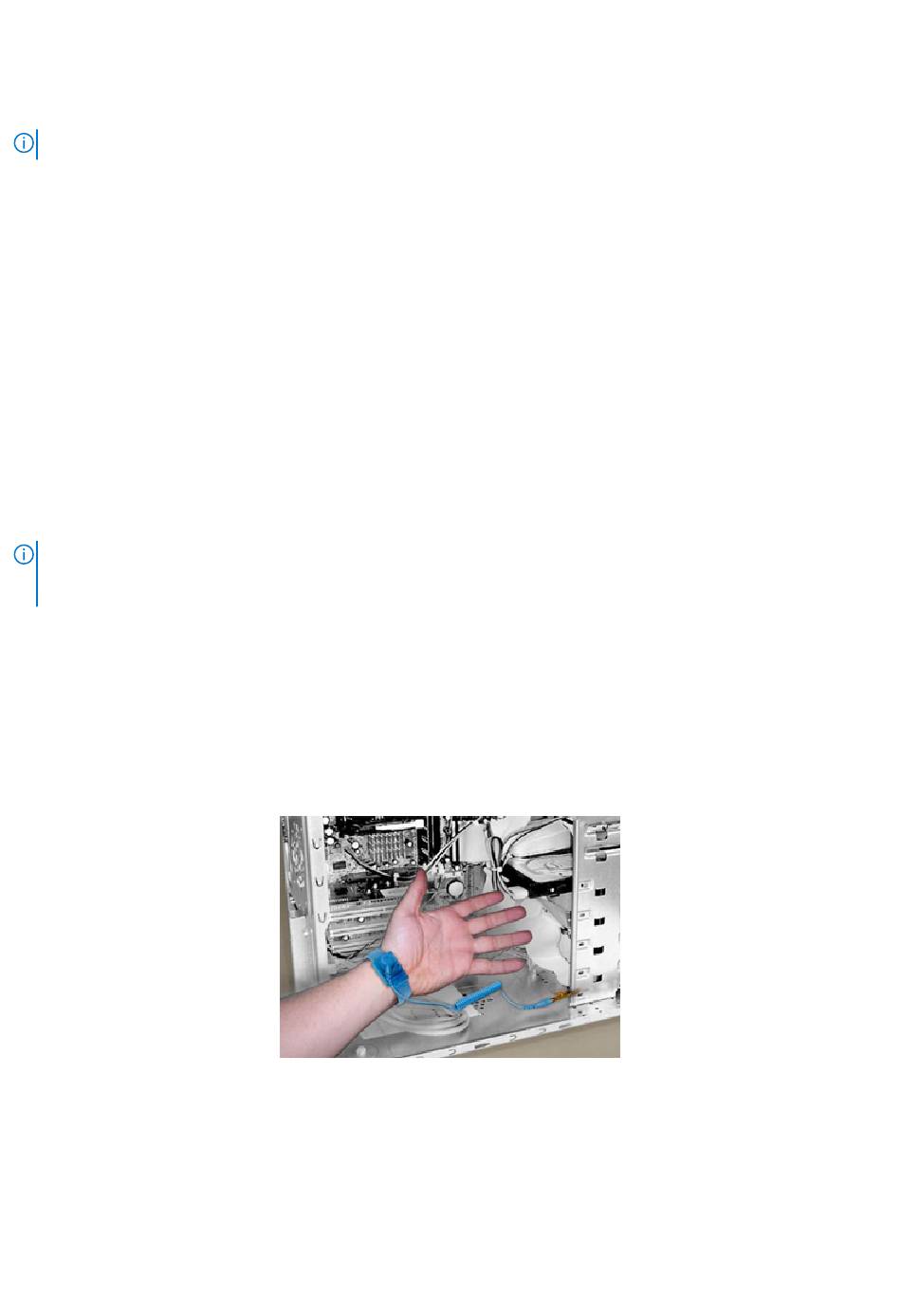 ● Use a wrist grounding strap and mat when working inside any system to avoid electrostatic discharge (ESD) damage.