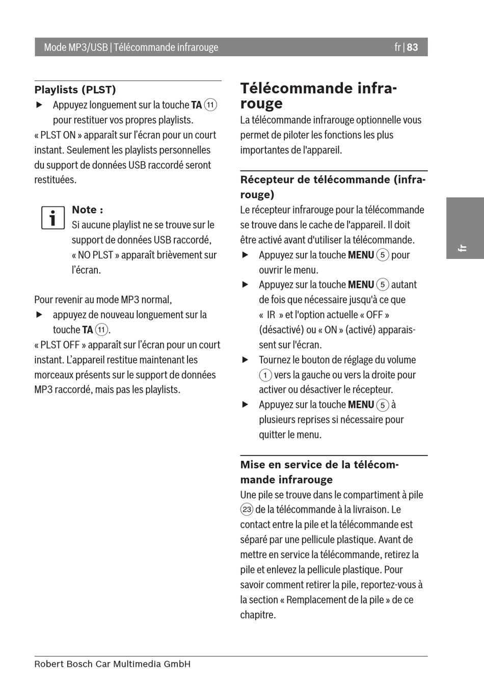 Mode MP3/USB | Télécommande infrarouge