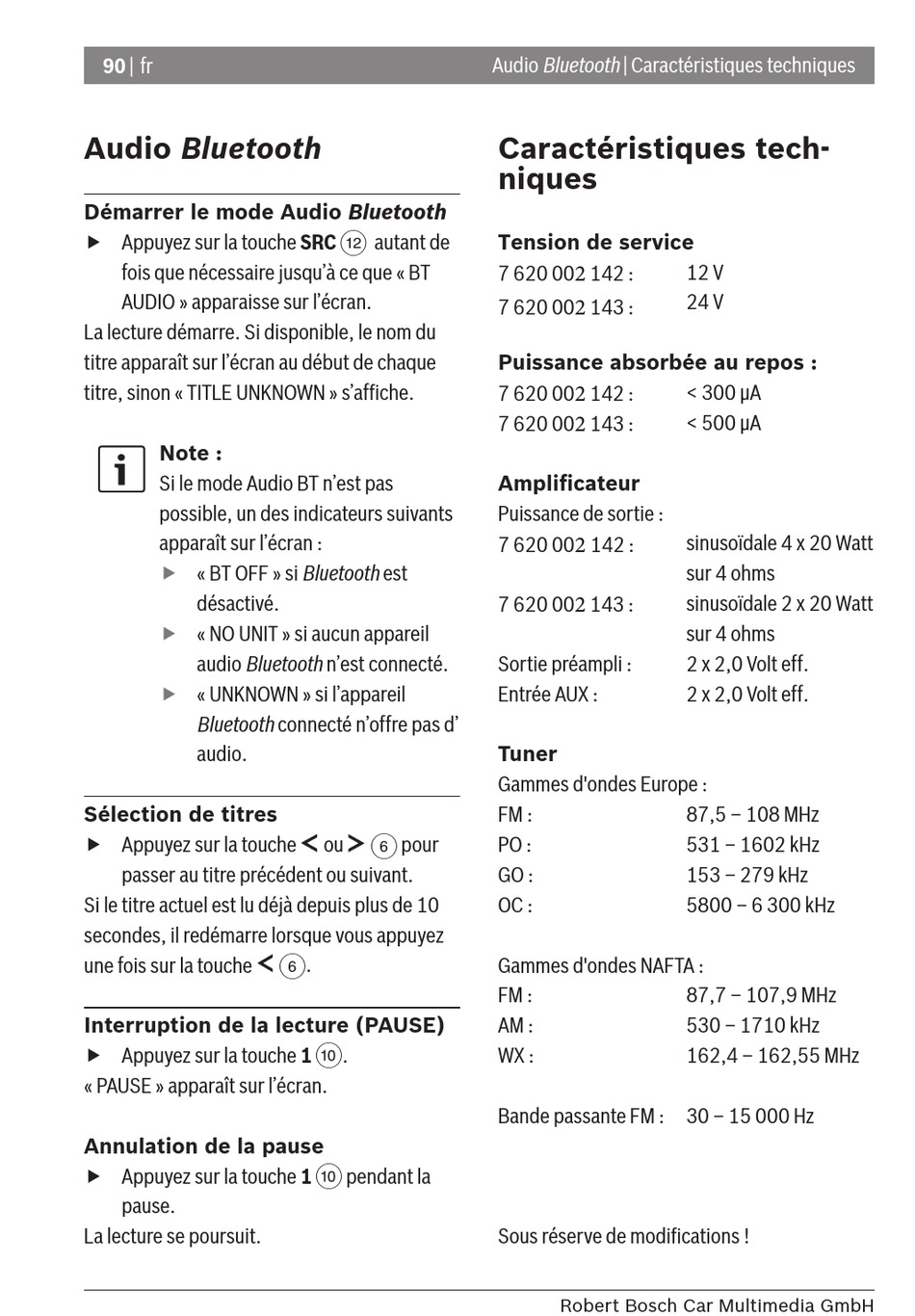Audio Bluetooth | Caractéristiques techniques