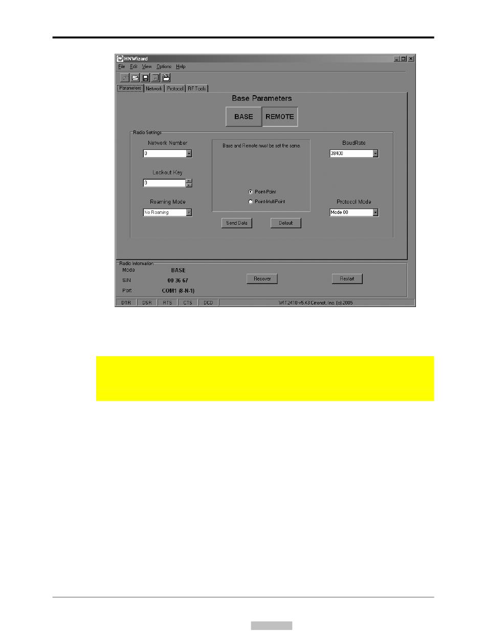 To set the HopNet radio as a base, click on the Base button. The Base button will