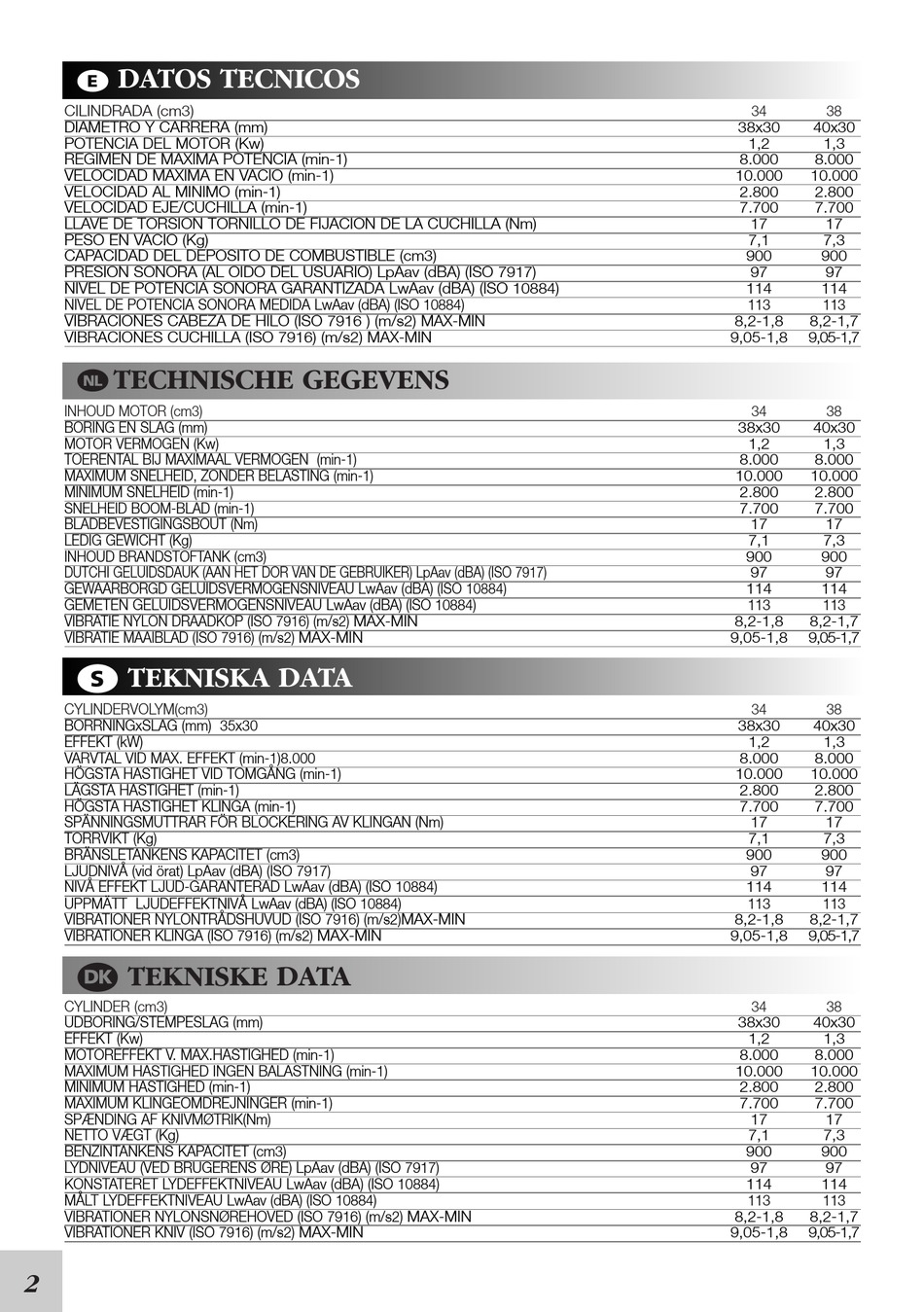 VIBRATIONER NYLONTRÅDSHUVUD (ISO 7916) (m/s2)MAX-MIN